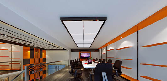 上圖為北京的某五金行業辦公室裝修案例,它的會議室的裝飾真的大量采用了本次裝飾的主要顏色,這是很有活力的顏色,辦公區這里的地使用實木地板來裝飾地面,議區內做了很多展示架,為企業提供一個很好的展示環境。